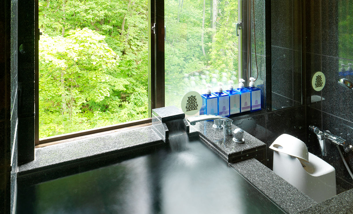 This guestroom type comes with a conversation-friendly living room and comfortable twin room connected by an arch. Open the windows to enjoy the sound of the babbling Niseko Anbetsu River trickle into your room as you relax and enjoy quality time with that special someone.