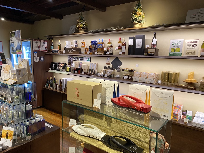 売店「杢」では北海道のニセコならではのアイテムを様々に取り揃えています。希少なお酒から匠の逸品まで、旅の思い出に特別な一品をお選びください。