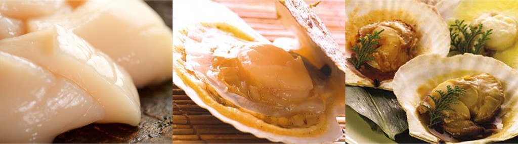 (和食)ホタテの刺身、ホタテの握り寿司、ホタテの貝焼き